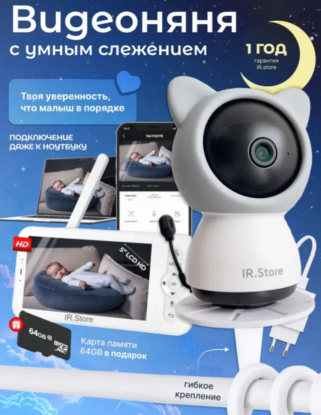 Гибридная видеоняня 2-в-1 (5″ LCD + Wi-Fi App) -Ir. store
