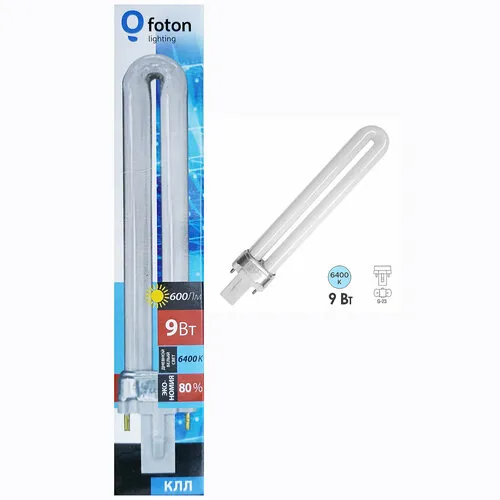 310шт/уп. Лампа Люминесцентная 9Вт S-2P G23 230В 600Лм 6400К Свет Холодный белый 167х34мм Foton Lighting, уп. 10шт