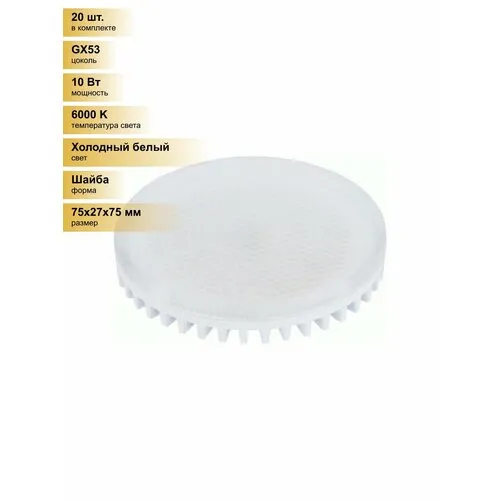 (20 шт.) Светодиодная лампочка LEEK GX53 св/д 10W(850lm) 6000K 6K 75x27 матов. LE010508-0027 Холодный белый. Цоколь GX53