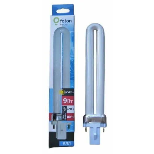 35шт/уп. Лампа Люминесцентная 9Вт S-2P G23 230В 600Лм 4200К Свет Нейтральный белый 167х34мм Foton Lighting, уп. 5шт