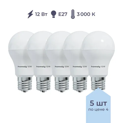 "5 штук светодиодных ламп Homsly, 12 Вт, А60, Е27, 3000К" относится к дорогому сегменту . Цена, предложенная магазином Яндекс.Маркет , на 264% отличается от популярной цены (130 руб.).