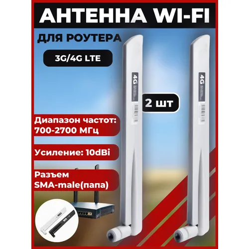 Антенна для роутеров 3/4G с усилением 10 дБи и SMA-штекерами, 2 штуки, белая
