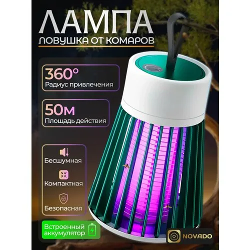 Антимоскитная лампа от комаров на аккумуляторе / Электрическая ловушка для дома и улицы / Novado