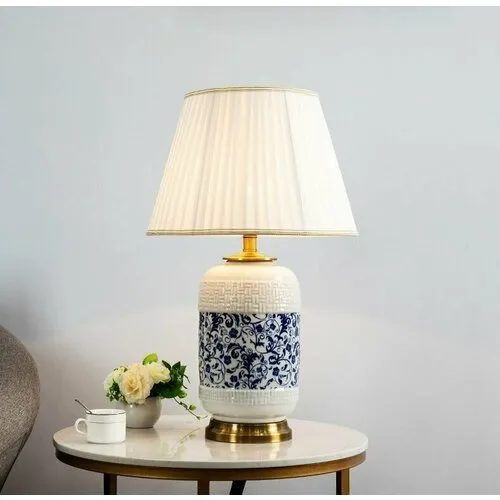 Бело-голубая фарфорово-керамическая настольная лампа 65Х40 см