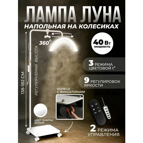 Бестеневая лампа луна напольная для наращивания ресниц на колесиках белая 40Вт