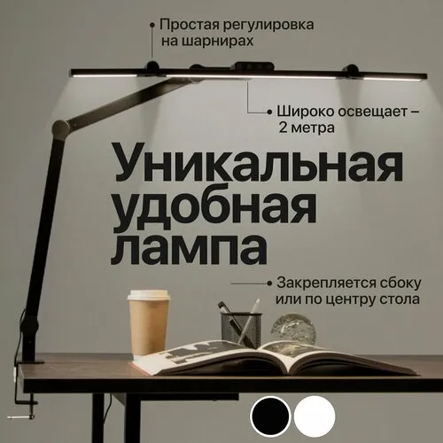 Лампа настольная светильник бестеневой, яркая и мощная для школьника и офиса с двойным светом черный