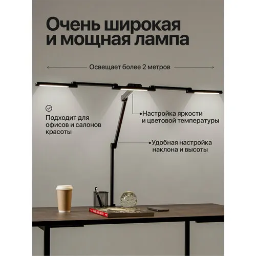 Настольная лампа, бестеневая, для офиса и школьника, 24 Вт, Черная