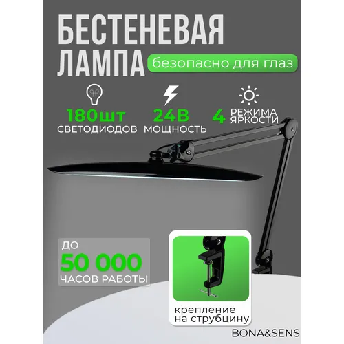 Бестеневая светодиодная лампа, настольный, черный, холодный, 82 см