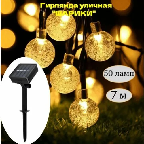 Электрогирлянда уличная 50 ламп на солнечной батарее