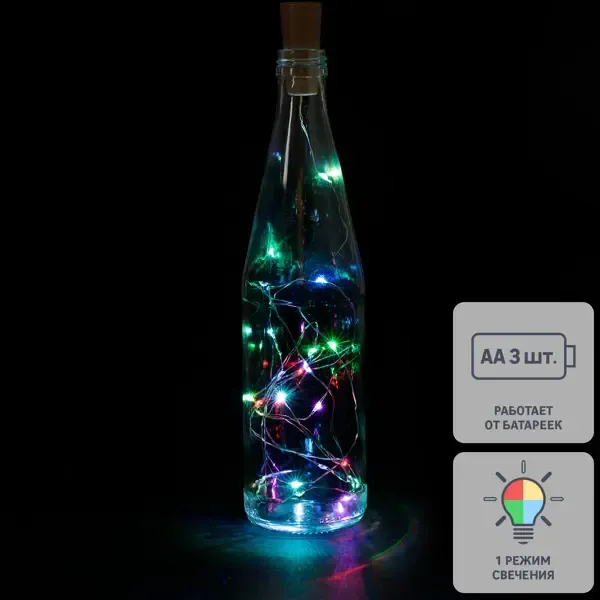 Электрогирлянда-пробка Роса 2 м 20 ламп разноцветный цвет света