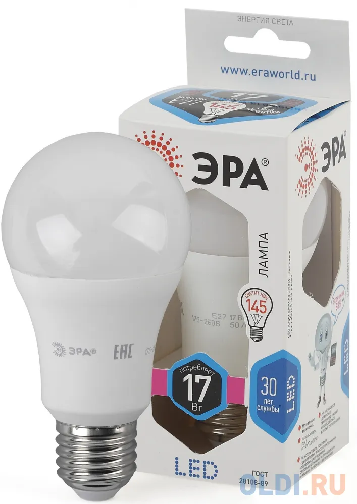 Светодиодная лампа ЭРА LED A60-17W-840-E27 10/100/1200 Б0031700