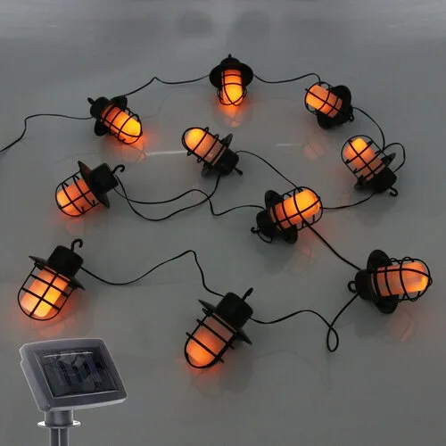 Гирлянда для улицы «Фонари» 4 м 10 ламп LED (10*8 см) чёрн. пров, 1 реж, IP-54, Эффект горящего пламени (солнечная батарея)