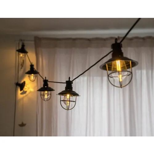 Гирлянда из лампочек дачное ретро, 10 тёплых белых LED-огней, 4.5+5 м, чёрный провод, коннектор, Kaemingk 490092