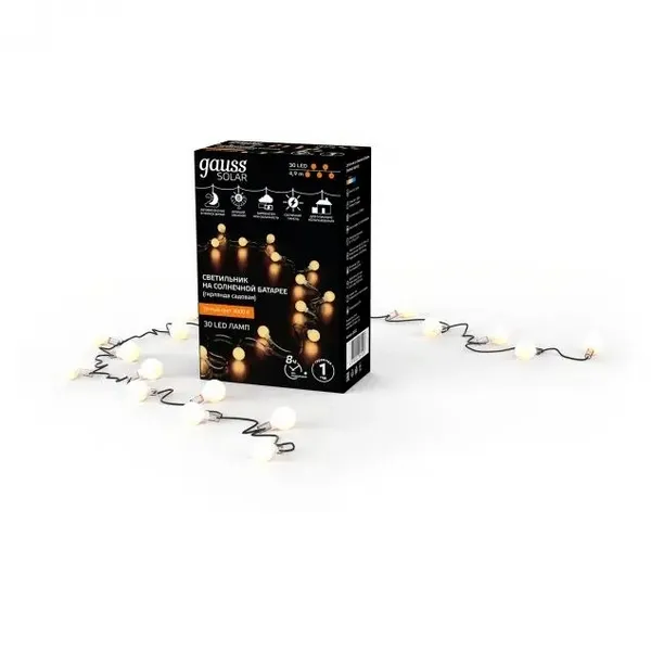 Гирлянда на батарее садовая на солнечной батарее ламп, шары, белый свет Gauss Solar GS032