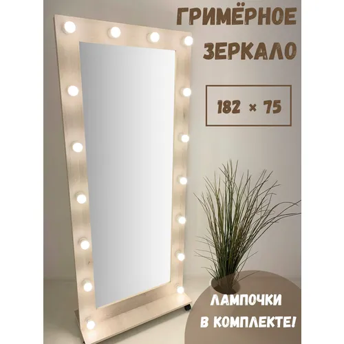 Гримерное зеркало BeautyUp 182/75 с лампочками на подставке с колесиками, Цвет "Дуб сонома"