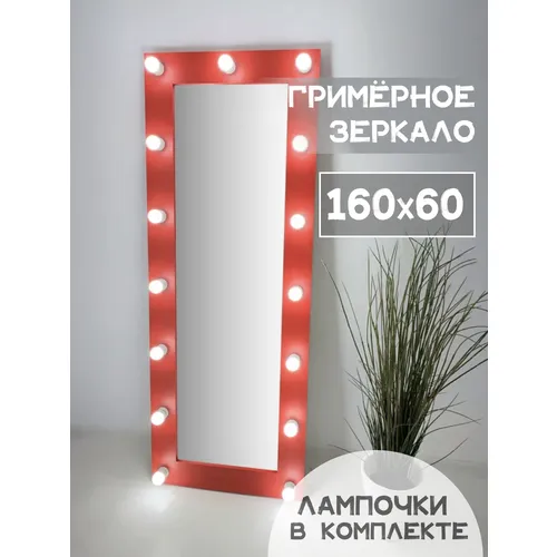 Гримерное зеркало с лампочками BeautyUp 160/60 цвет "Красный"