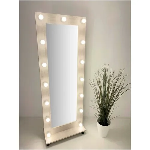 Гримерное зеркало BeautyUp 182/75 с лампочками на подставке с колесиками, Цвет "Сосна рустик"