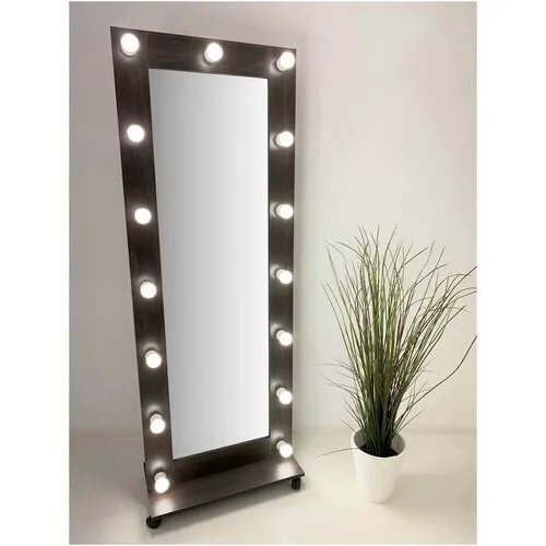 Гримерное зеркало BeautyUp 182/75 с лампочками на подставке с колесиками, Цвет "Черный"