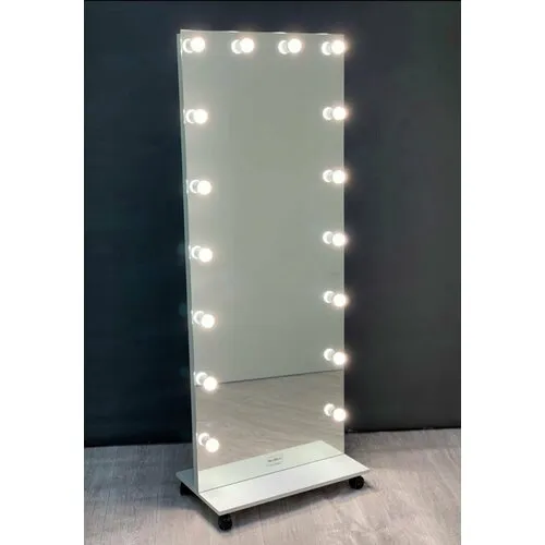 Гримёрное зеркало цельное безрамное 170х70 напольное с подставкой и с лампочками макияжное косметическое с подсветкой