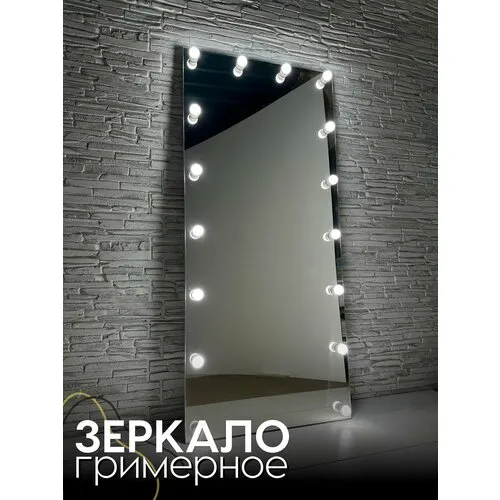 Гримёрное зеркало цельное безрамное 180х80 настенное под лампочки макияжное косметическое с подсветкой