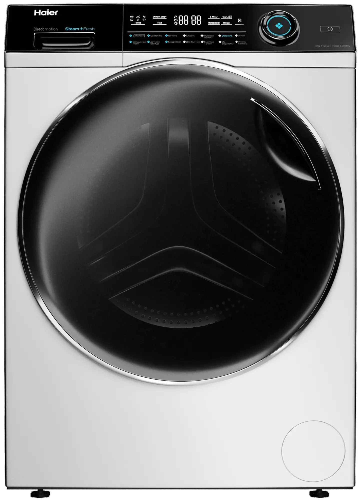 Haier HW80-B14979 - тот случай, когда стиральная машина хочет быть всем и сразу. И химчисткой, и лабораторией, и нянькой для детских вещей. Пар, ультрафиолет, автоматическая промывка, подсветка, антибактериальные пластики, интеллектуальные взвешивания, удаление пятен с выбором типа загрязнения, автопромывка уплотнителя, барабан «подушечкой»… Словно её собирали не инженеры, а команда маркетологов, каждый из которых хотел добавить свою фишку, лишь бы выделиться на фоне конкурентов.