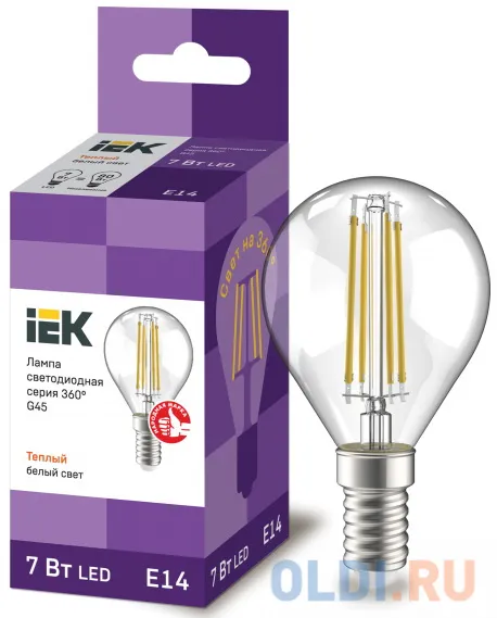 "Iek LLF-G45-7-230-30-E14-CL Лампа LED G45 шар прозр. 7Вт 230В 3000К E14 серия 360°" относится к среднему сегменту . Цена, предложенная магазином Олди , на 50% отличается от популярной цены (40 руб.).