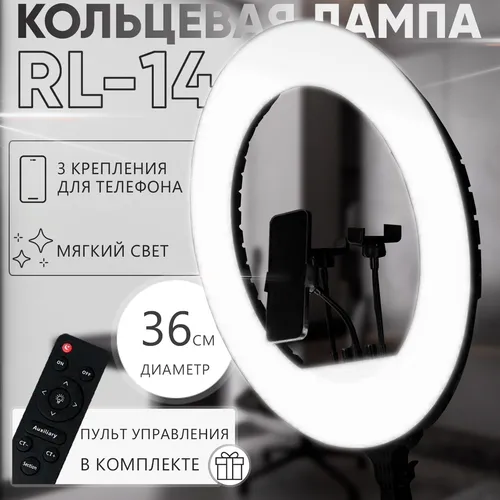 Кольцевая лампа LED 36 см + 3 гибких держателя для телефона + пульт управления