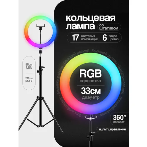 Кольцевая лампа со штативом, WALKER, WLR-3350R, 33 см, RGB // видеосвет, свет для видеосъемки, godox, кольцевая лампа, свет для фотосъемки