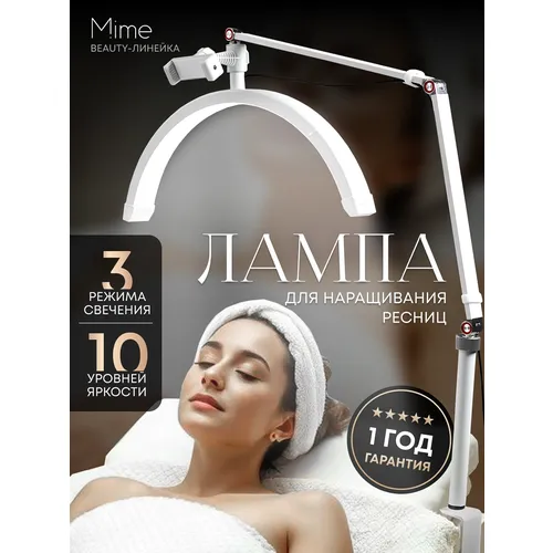 6Лампа для наращивания ресниц напольная косметологическая Mime, лампа луна бестеневая над кушеткой LED, белая