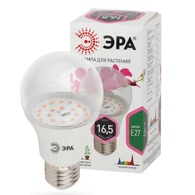 лампа для растений ЭРА 11Вт E27 220В полный спектр груша