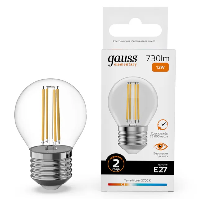 Цены на похожие товары Gauss, 2700 K, резьбовой, 730 Лм, 240 В, 12 Вт, шар