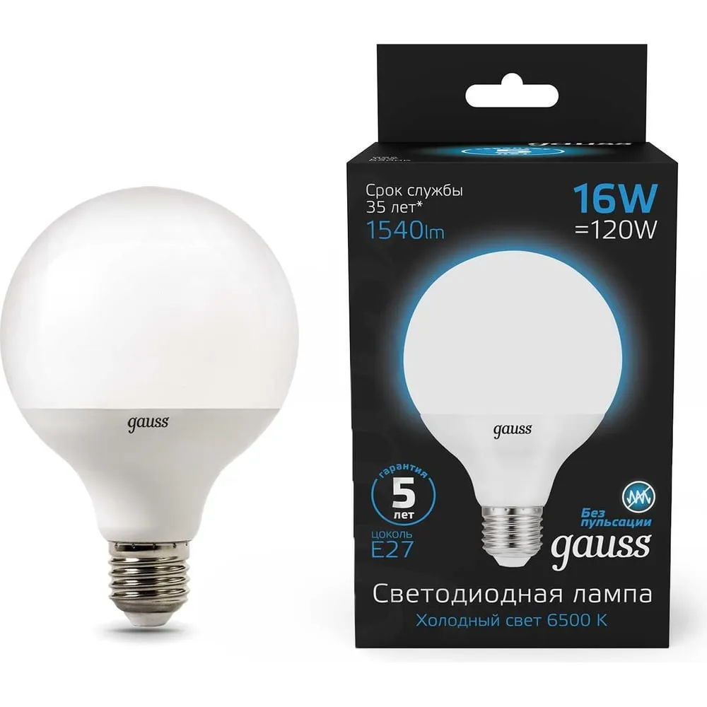 Цены на похожие товары Gauss, 6500 K, 1400 Лм, 90 Ra, 16 Вт, e27, 220 В, G, шар