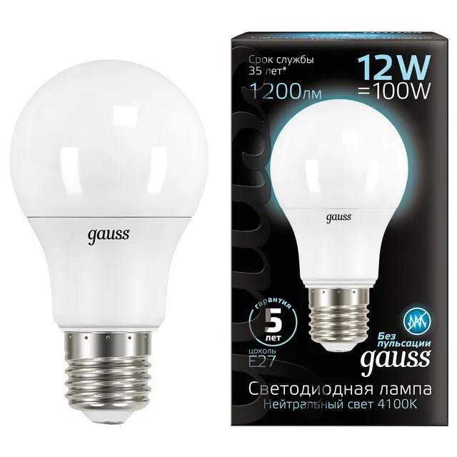 лампа GAUSS 12Вт E27 LED 1200Лм 4100K A60 груша