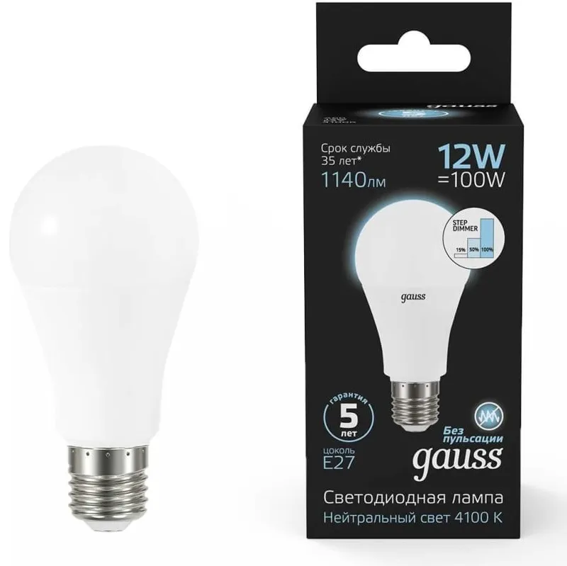 Лампа Gauss A60 12W 1140lm 4100 K Е27 шаг. диммирование LED