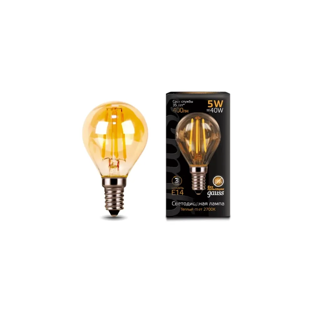 Цены на похожие товары Gauss, 2700 K, 400 Лм, 80 Ra, 5 Вт, шар, e14, G, 220 В