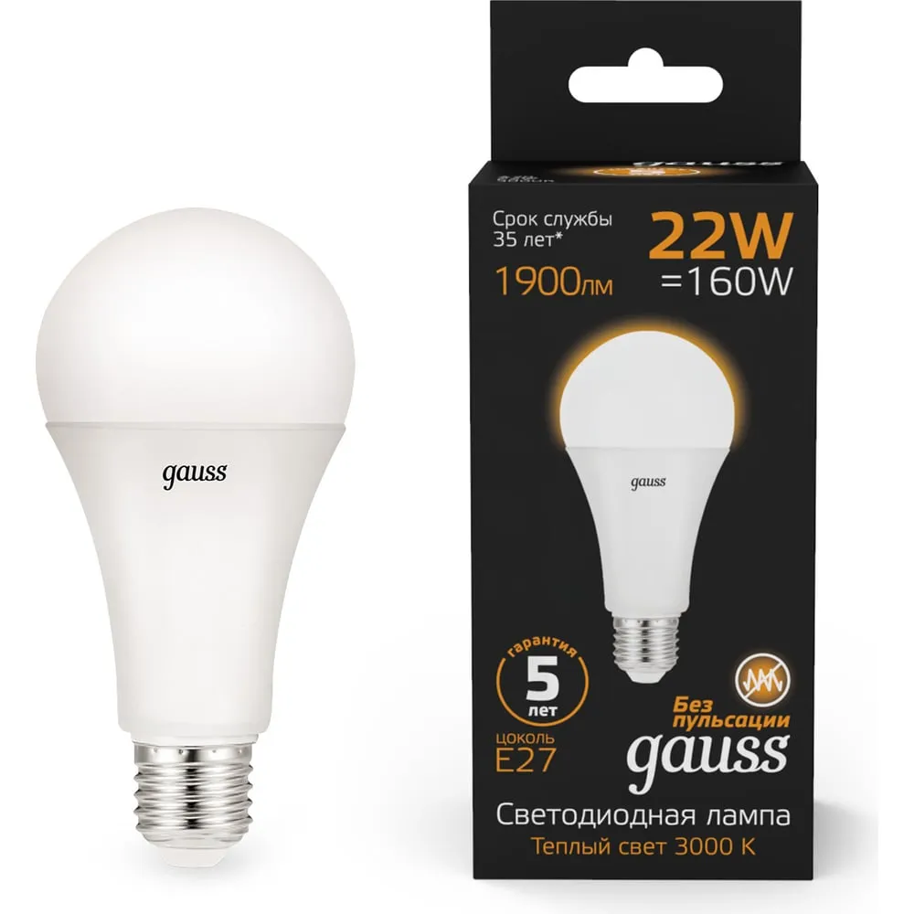 Лампочка Gauss Fil A70 E27 23 Вт груша 2300 Лм, теплый белый