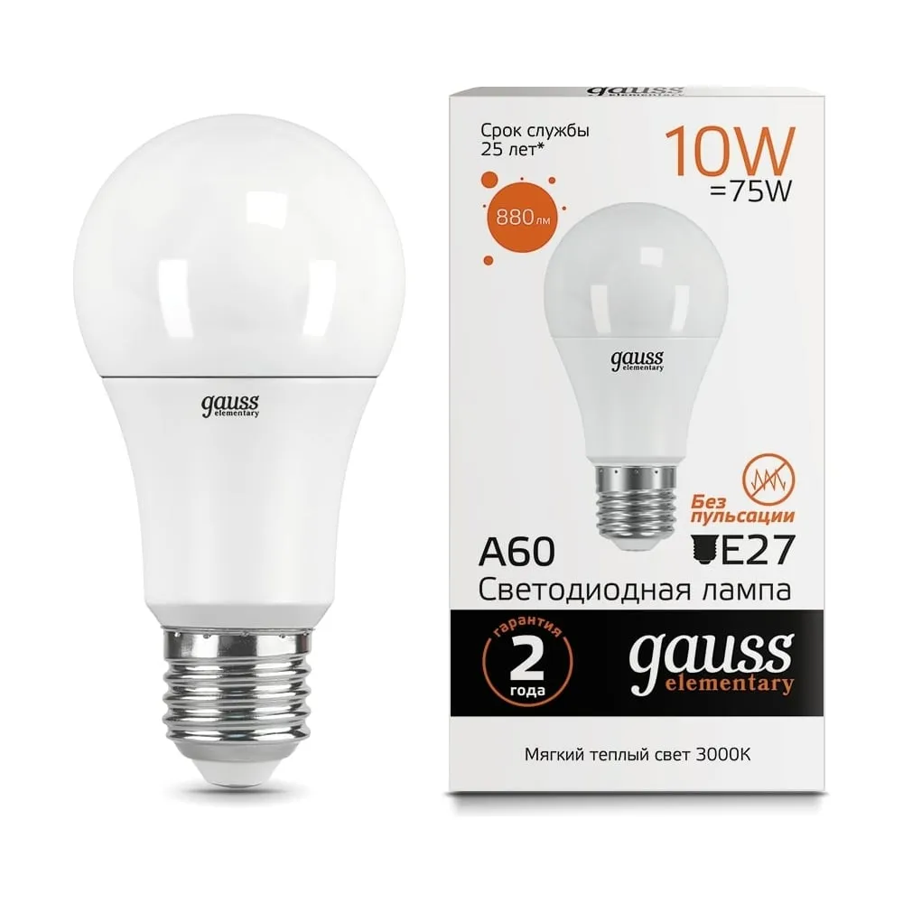 Лампа Gauss LED Elementary A60 10W E27 2700K 23210