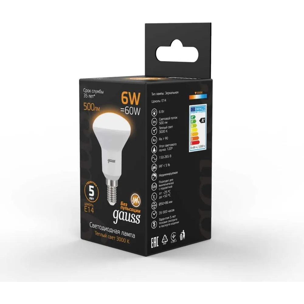 Цены на похожие товары Gauss, рефлектор, r50, e14, 6 Вт, 2700 K, 500 Лм, 90 Ra, 220 В
