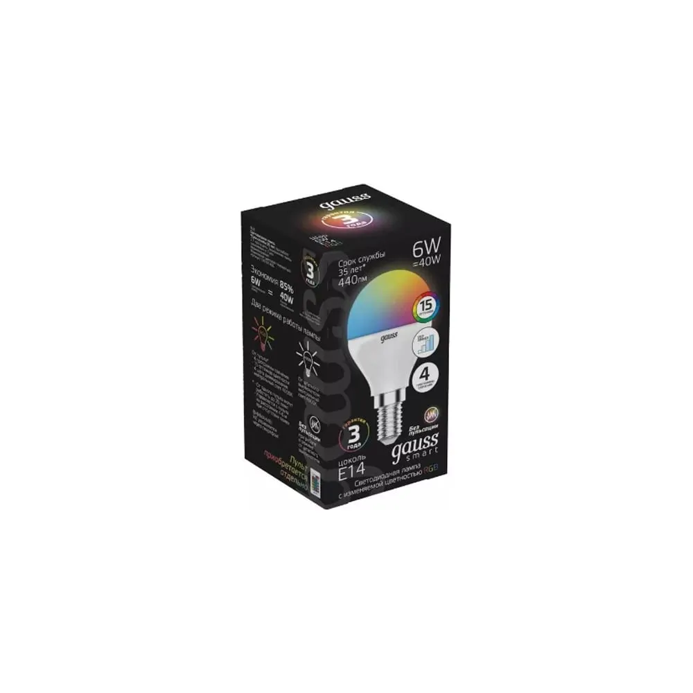 Цены на похожие товары Gauss, 3000 K, 440 Лм, 80 Ra, 6 Вт, e14, G, шар, 220 В