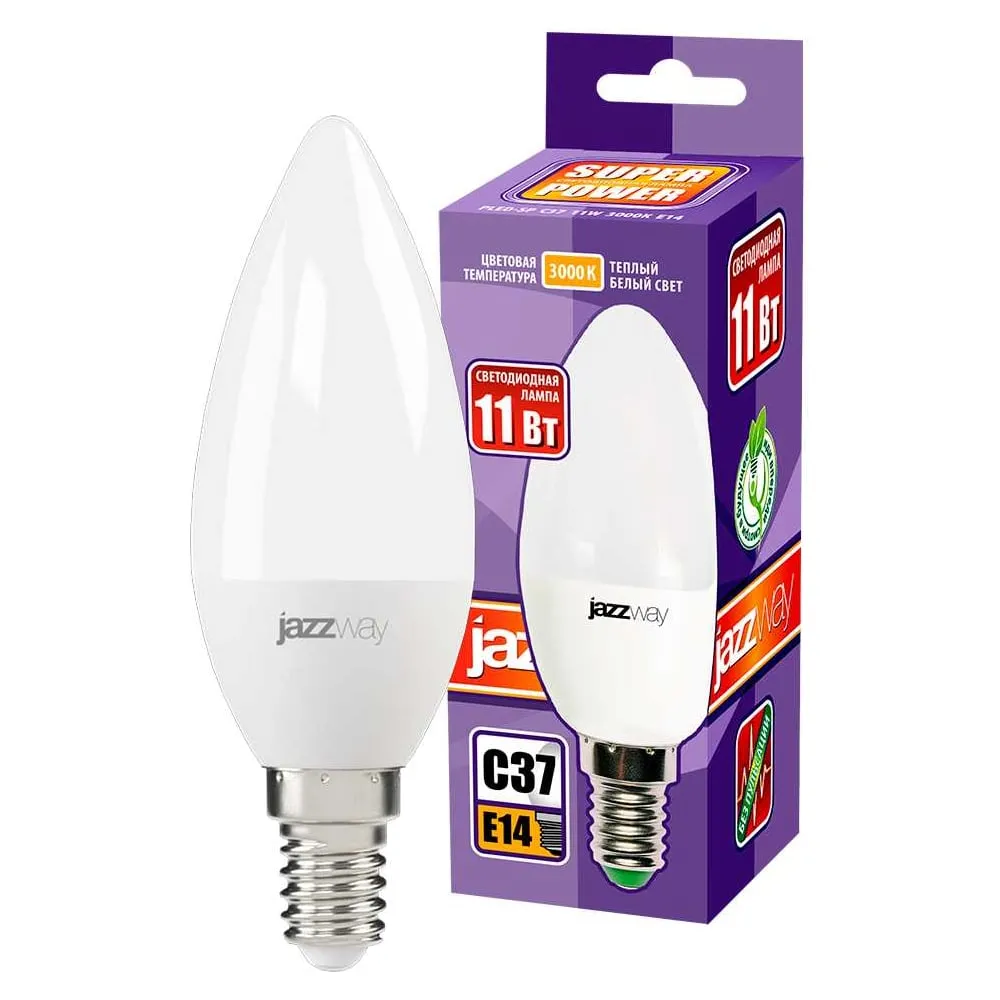 Цены на похожие товары Jazzway, 3000 K, 980 Лм, 80 Ra, 11 Вт, 220 В, C, свеча, e14
