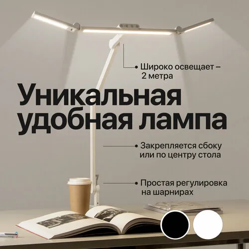 Лампа настольная светильник бестеневой, яркая и мощная для школьника и офиса с двойным светом черный