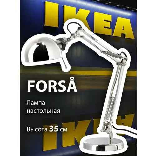 Лампа настольная IKEA FORSÅ, E14, питание от сети, серебристая