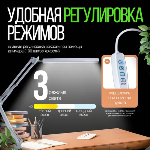 4Лампа настольная SELEROLIFE, светодиодная, 10 Вт, площадь освещения 20 м²