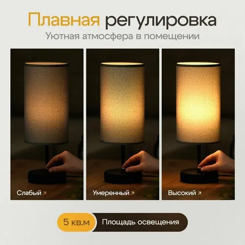 Лампа настольная, серая, E27, ручное управление, с USB зарядкой