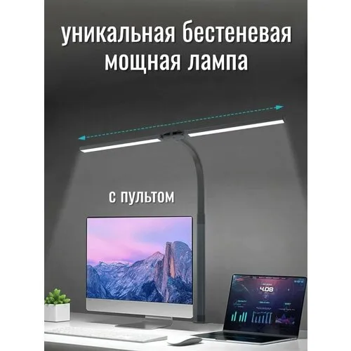 Лампа настольная светильник бестеневой, яркая и мощная для школьника и офиса с двойным светом черный