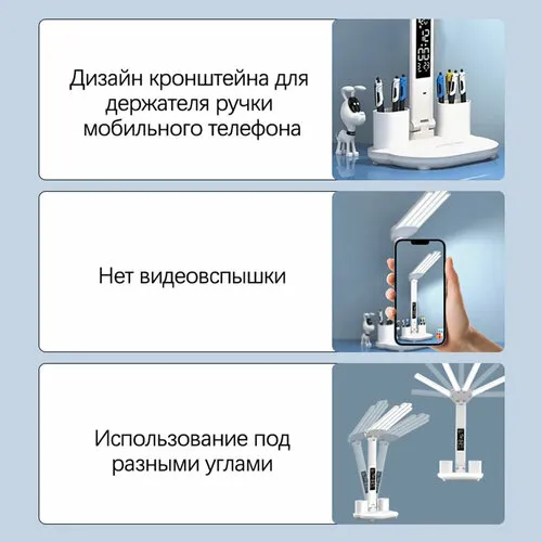 Лампа настольная светодиодная для школьника для учёбы, светильник настольный с часами и дата.