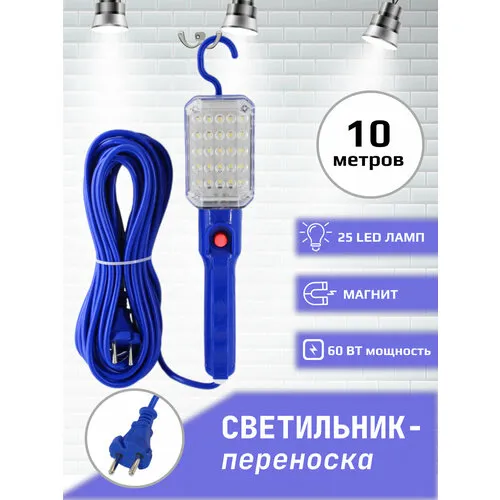 Лампа переносная светодиодная , Переноска-светильник длина кабеля 10 метров, синяя