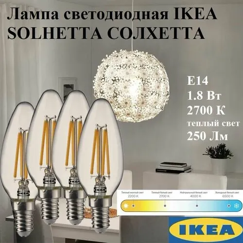 Лампа светодиодная ИКЕА СОЛХЕТТА, E14, 1.8 Вт, 2700 К