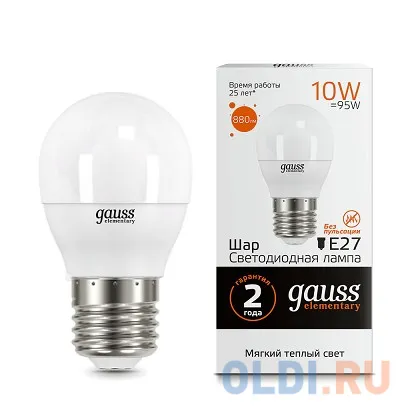 Лампа Gauss LED Elementary Шар 10W E27 880lm 3000K 1/10/100