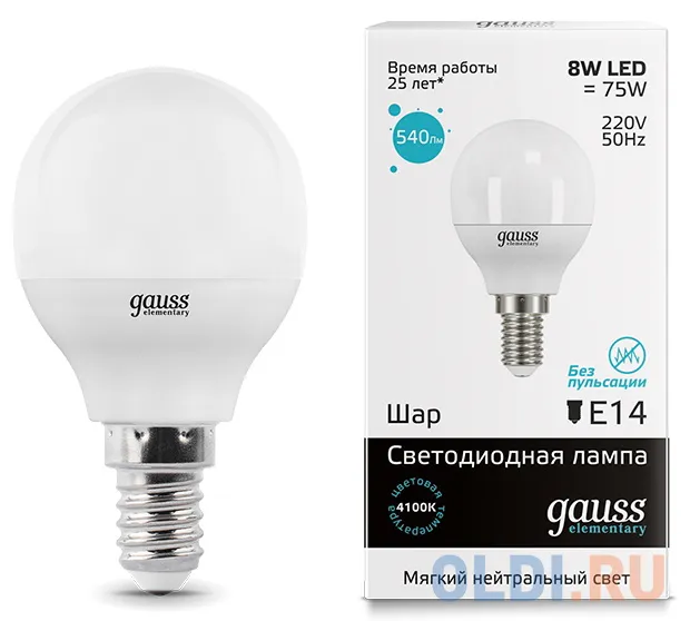 Цены на похожие товары Gauss, e14, 8 Вт, 4100 K, шар